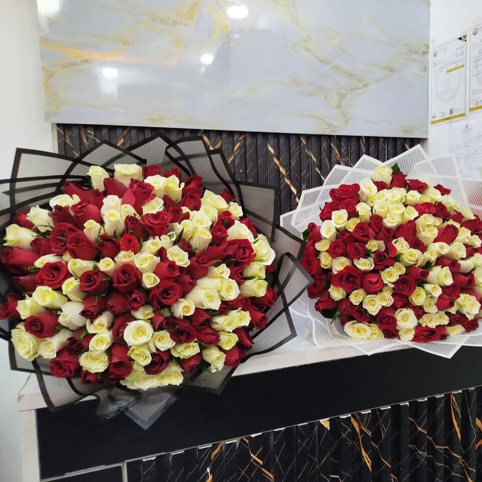 Celebrate love and elegance with Rose Whisper, a stunning bouquet of fresh white and red roses. Symbolizing passion and purity, this romantic arrangement is perfect for anniversaries, weddings, Valentine’s Day, or heartfelt surprises. Handcrafted to convey timeless beauty and deep emotions